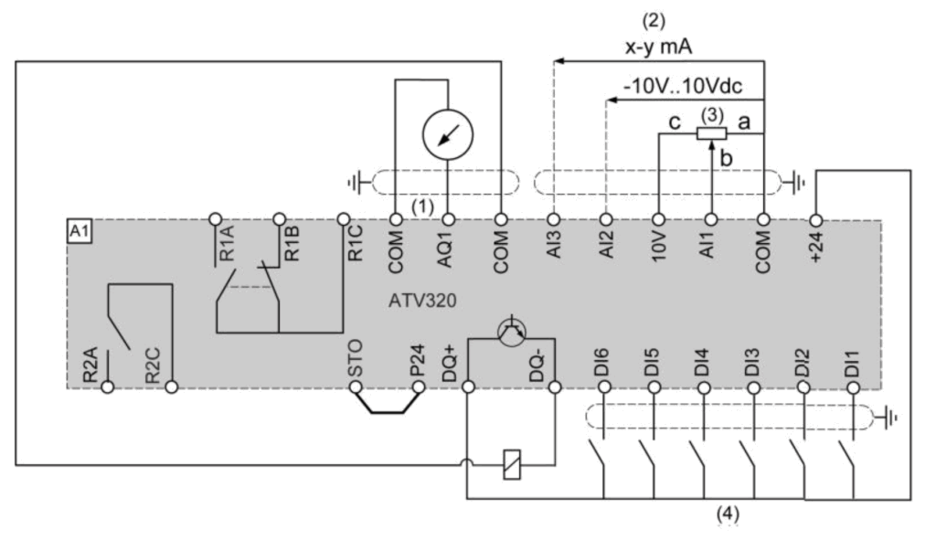 ترمینالهای فرمان (Command Terminals) در اینورتر اشنایدر ATV320 بخشی از ترمینالهای کنترل هستند که برای دریافت سیگنالهای کنترلی مانند استارت (run)، توقف (stop)، جهت چرخش (forward/reverse)، یا انتخاب مرجع سرعت استفاده میشوند. این ترمینالها شامل ورودیهای دیجیتال (DI1-DI6) و در برخی موارد ورودیهای آنالوگ (AI1-AI3) هستند که از طریق منوی CtL- (فرمان) قابل برنامهریزیاند. الکترومارکت خدمات تنظیم و سیمکشی ترمینالهای فرمان را برای کاربردهای خاص (مانند کنترل دوسیمه یا سهسیمه) ارائه میدهد تا عملکرد بهینه تضمین شود.