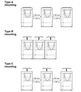 Type B: نصب درایوها بهصورت کنارهم با کاور برداشتهشده (حفاظت IP20).