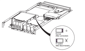 برای مدلهای با ولتاژ ۵۰۰–۶۹۰V (سری Y) باید لینک فیلتر RFI قطع شود.