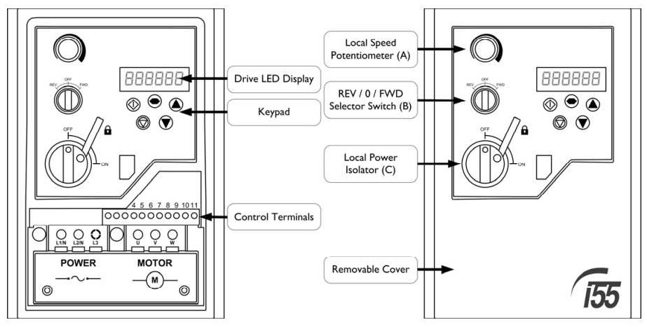 درایو Optidrive E2 از طریق کیپد و نمایشگر تنظیم و مانیتور میشود: