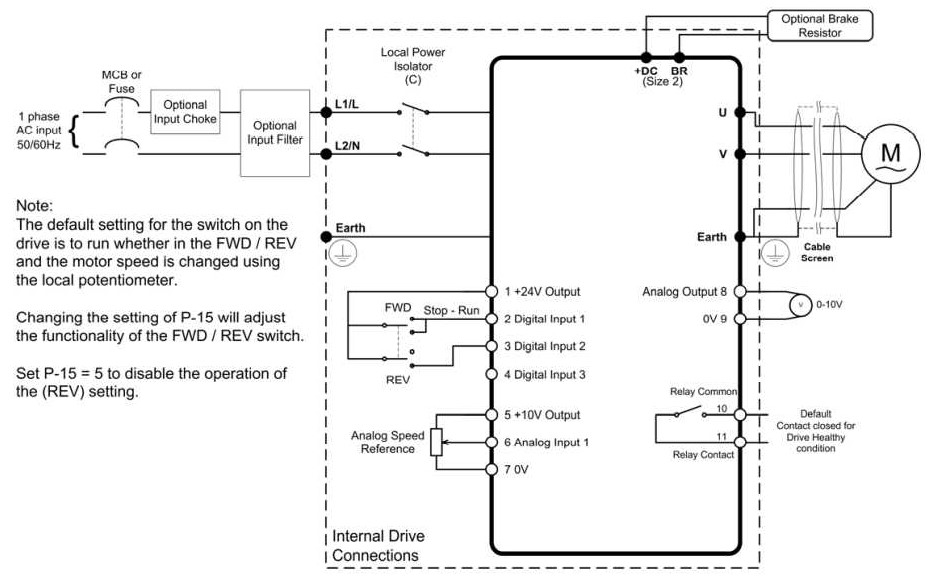 ۲.۳. دیاگرام اتصالات (INVERTEK E2 Connection Diagram )
